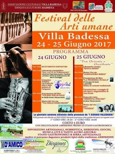 Infatti a Villa Badessa è andato in scena IL FESTIVAL DELLE ARTI UMANE e TRA ORIENTE E OCCIDENTE. Qui di seguito la locandina completa delle attività con esposizione in piazza e nel centro storico di numerosi lavori di artigiani, di arti antiche, MUSICA e stand gastronomici della cucina casareccia abruzzese e con ricette UNICHE dell’Oasi orientale arberesh, quali il TEPSI, PIPECCHIO e non solo….