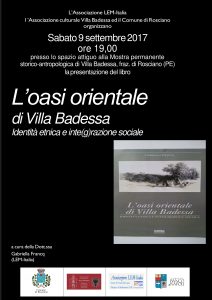 C. L ’Associazione LEM-Italia, l’Associazione culturale Villa Badessa ed il Comune di Rosciano hanno organizzato presso lo spazio attiguo alla Mostra permanente storico-antropologica di Villa Badessa, fraz. di Rosciano (PE) la presentazione del libro: L’Oasi orientale di Villa Badessa. Identità etnica e inte(g)razione sociale, di Gabriella Francq. Ora il testo è disponibile su richiesta presso la ns sede.
