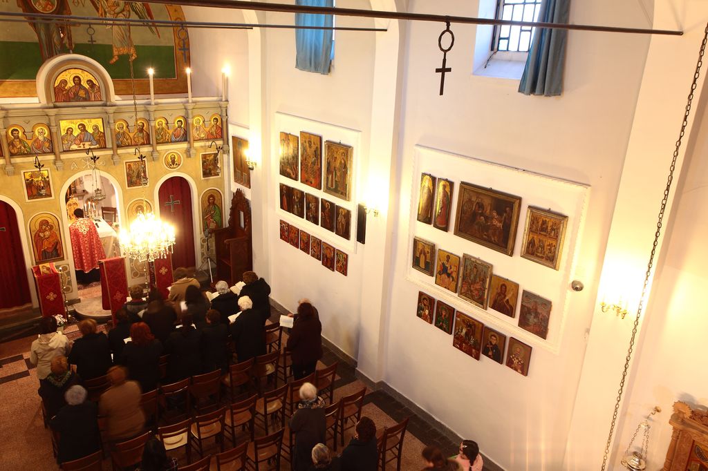 La SS. Liturgia prevede l’Ufficio della Resurrezione e Mattutino; a seguire la Liturgia di S.Giovanni Crisostomo. La Liturgia è arricchita da canti del coro parrocchiale ancora in lingua greca, in un contesto unico per la presenza alle pareti interne di oltre 70 icone sacre di pregevole fattura, datate tra il XVII-XIX secolo.